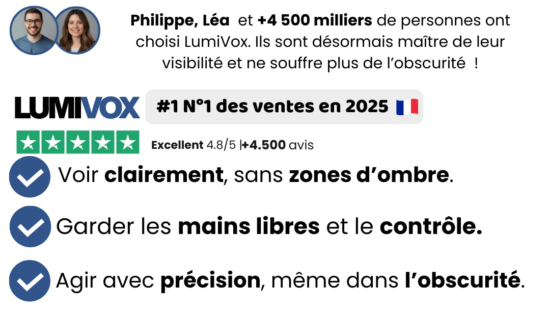 Vision élargie : Un éclairage grand angle qui couvre l’ensemble du champ visuel.